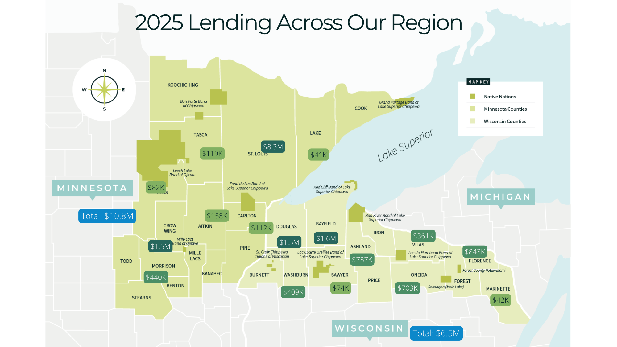 2025 was a year of meaningful growth across our region. From Ely, Minnesota, in the north to Marinette, Wisconsin, in the east, and as far west as Morrison County, our work spanned hundreds of miles of shorelines, forests, farmland, and Main Streets. Across that entire landscape, one theme was clear: entrepreneurs here are building, expanding, and investing in the future of their communities.
